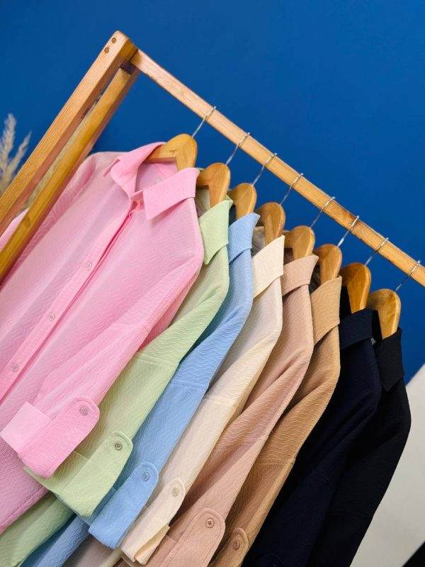 شومیز زنانه پاستلی آستین پاکتی