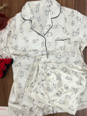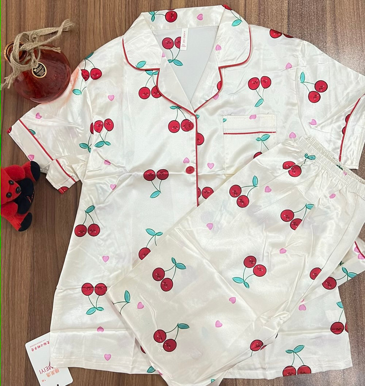 ست شومیز شلوار زنانه ساتن آستین کوتاه سایزبندی