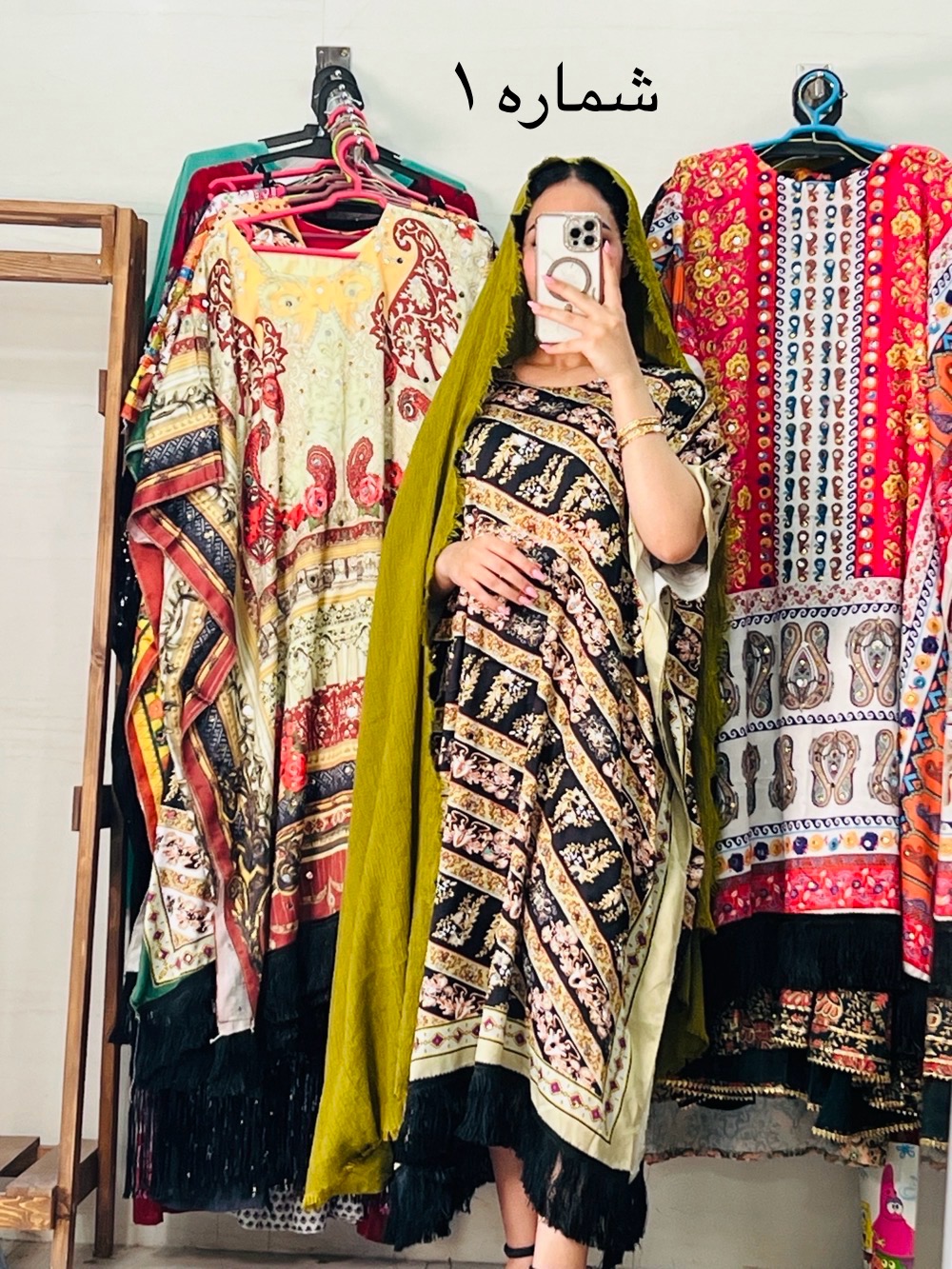 کفتان زنانه یقه گلدوزی نخی فری سایز