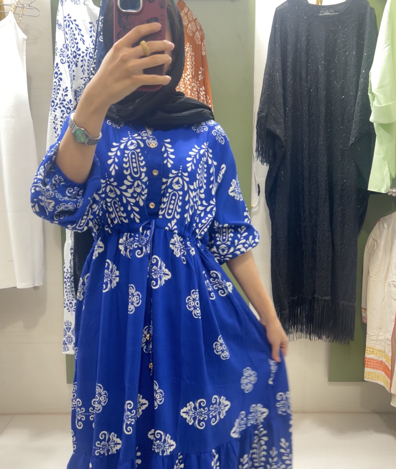 پیراهن نخی بلند زنانه دکمه دار فری سایز